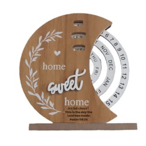 Description: This Creative Wooden Home Decor Perpetual Calendar is made of natural wood and features an artistic, round design. Its manual rotation feature makes it a fun and interactive addition to any desk or home. Its Art Deco style and decorative purpose make it the ideal anniversary or special occasion gift. It is both functional and elegant, measuring 19.5 x 20.5cm.